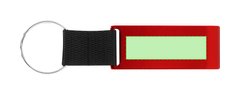 Llavero soporte con moneda para carro fabricado en aluminio, especialmente diseñado para smartphone y tablet. De acabado mate, con cinta en nylon de color negro.