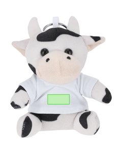 Llavero vaca de peluche con camiseta personalizable con anilla metálica para fácil transporte, ideal para sublimación.