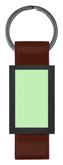 Llavero de divertido diseño con cinta de PU reciclado. Con cuerpo negro en acabado mate.