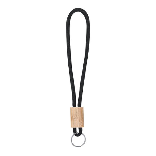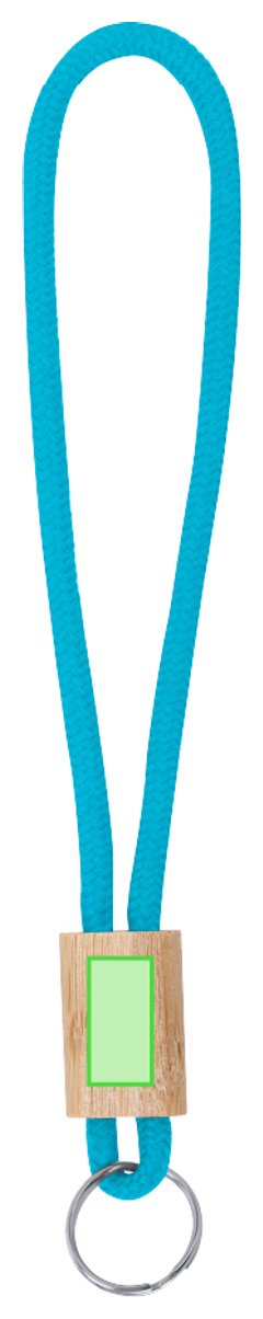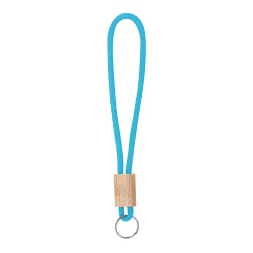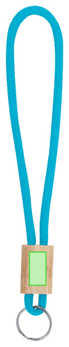Llavero cordón de poliéster en color, ajustable en bambú y anilla metálica.