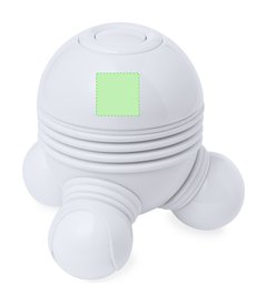Masajeador de mano eléctrico. Excelente confort por sus propiedades de vibración, ofreciendo una experiencia de relajación y alivio. Su diseño se adapta fácilmente a la mano para un agarre firme, con luces indicadoras de funcionamiento dentro de las bolas. Compacto y portátil, alimentado por 3 pilas AAA (no incluidas). Presentado en una caja de diseño kraft.