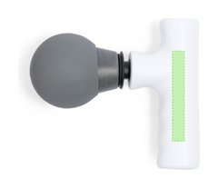 Masajeador eléctrico. Ayuda a relajar los músculos, aliviar los efectos del entrenamiento, liberar tensión y revitalizar el cuerpo. Con dos posiciones de intensidad. Batería recargable de larga duración de 800 mAh - cable USB incluido-. Con manual de uso en español e inglés. Presentado en funda de poliéster RPET con cierre de cordón, elaborada a partir de plástico reciclado para así fomentar la reutilización de residuos plásticos y contribuir a la sostenibilidad del planeta. Etiqueta distintiva RPET en la funda.