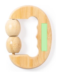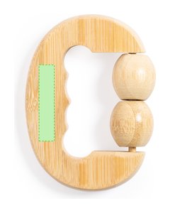 Masajeador de línea nature, fabricado en en bambú. Con 2 bolitas masajeadoras a juego y asa ergonomica. Presentación en caja individual de diseño kraft.