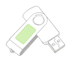 Memoria USB de 32GB de capacidad, con mecanismo giratorio, cuerpo de suave acabado y clip metálico. Presentada en estuche individual.