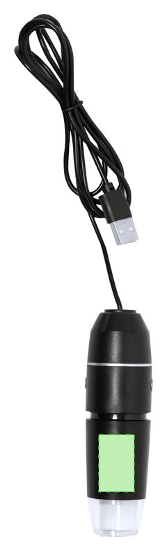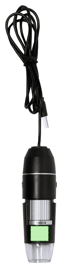 Microscopio digital compacto con aumento de 0-1600X. Luz LED ajustable y resolución personalizable hasta 1600x1200 de forma manual. Incluye soporte ajustable, cable de 140 cm con adaptador USB, Tipo C y Micro USB, para usar en diversos dispositivos. Diseño elegante en negro mate con detalles plateados, compatible con la app para Android. Dispone de regla de calibración y manual en español e inglés