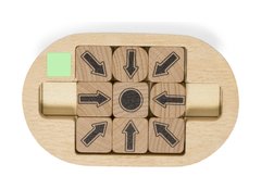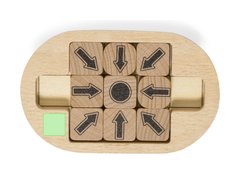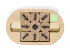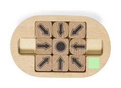 Juego de habilidad fabricado en madera, compuesto por 9 piezas y un tablero. El desafío consiste en deslizar las 8 piezas con flechas por el tablero para ordenarlas apuntando a la ficha con un punto, ofreciendo destreza y estrategia. Presentado individualmente en una caja de diseño kraft.