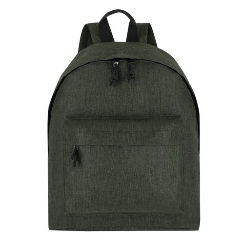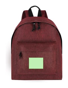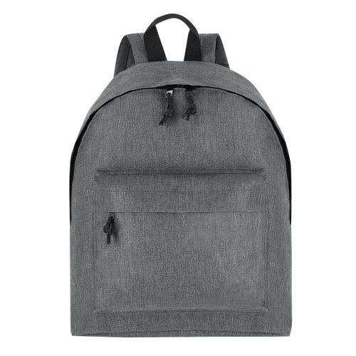Mochila fabricada en suave Poliéster RPET 600D y diseño jaspeado. Con bolsillo principal de cierre de cremallera con doble tirador metálico negro con cordón para fácil agarre. Incluye bolsillo frontal con cierre de cremallera. Espalda y cintas acolchadas ajustables. Con distintivo de RPET en etiqueta.