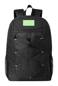 Mochila confeccionada en resistente 600D RPET. Cuenta con un bolsillo principal con cierre de cremallera, y doble tirador. Las cintas para los hombros son acolchadas y ajustables. Presenta bolsillos de rejilla en los laterales, así como cuerda elástica ajustable en el frontal. Disponible en una variada gama de colores con accesorios en negro, se presenta de manera individual en una bolsa reciclada. Logotipo RPET en etiqueta exterior. El material RPET se elabora a partir de plástico reciclado, para así fomentar la reutilización de residuos plásticos y ayudar a la sostenibilidad del planeta.