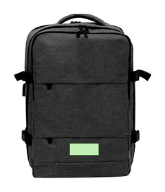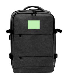 Mochila multifunción fabricada en 300D RPET. Elaborada con poliéster reciclado y resistente al agua, cuenta con una excelente transpirabilidad en la zona trasera, facilitando la disipación del calor gracias a sus cintas y respaldo acolchados. Las cintas anchas están diseñadas para aliviar la presión en los hombros, permitiendo llevar la mochila cómodamente durante largos periodos. Perfecta para cualquier situación por tener múltiples compartimentos: 2 bolsillos frontales. 3 compartimentos grandes centrales, uno de ellos portatodo, un bolsillo central de gran capacidad para guardad ropa y/o complementos con organizador en su interior, y un tercero acolchado, perfecto para llevar portátil de hasta 17,3 pulgadas. Además, cuenta con 3 apartados especiales, un bolsillo lateral perfecto para tener acceso rápido, bolsillo para calzado en la base con argollas de ventilación, y bolsillo antirrobo en la espalda, además de cable USB. Perfecta para viajes o para el día a día por sus cintas ajustables, adaptándose a todo estilo de vida. Disponible en negro y gris, con logotipo RPET incluido. Presentada individualmente en bolsa reciclada. El material RPET se elabora a partir de plástico reciclado, para así fomentar la reutilización de residuos plásticos y ayudar a la sostenibilidad del planeta.