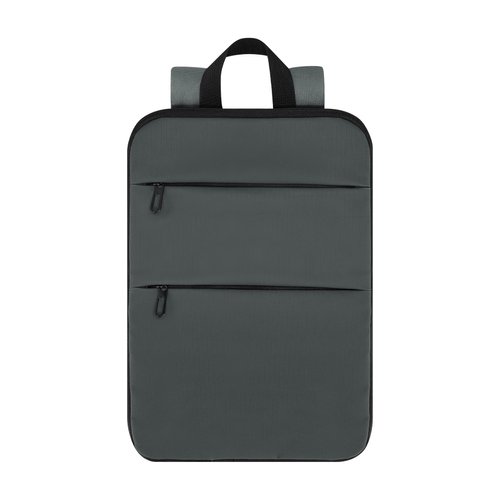 Mochila extensible confeccionada en resistente PU/ poliéster 600D. Equipada con cierre de cremallera de doble tirador, con posibilidad para ampliar la capacidad. Con dos compartimentos frontales y compartimento interior acolchado para portátil de hasta 15 pulgadas. Bolsillo lateral. Cómodas cintas de hombros acolchadas, transpirables y ajustables. Incluye cinta para fijarla en trolley y maletas.