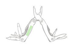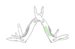 Multiherramienta con resistente cuerpo en acero inox de 12 funciones. Incluye cuchillos y navajas, destornilladores, limas, abridores y alicates. En vivos colores y presentada en resistente funda de poliéster y caja individual.