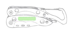 Multiherramienta de orizons con accesorios de acero inox de 6 funciones y mango de aluminio en vivos colores. Con alicates, navaja, abrelatas con destornillador de punta plana con función abrebotellas, destronillador de punta de estrella y mosquetón de acople. Presentada en atractiva caja de diseño con logotipo de la marca.