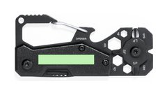 Excelente multiherramienta fabricada en aluminio y acero inox con acabado en color negro. Incluye 13 funciones diferentes: llave para tuercas hexagonales en varios tamaños, mosquetón, abrelatas, regla, rasqueta, cuchillo, destornilladores planos y philips. Presentada en caja de diseño kraft.