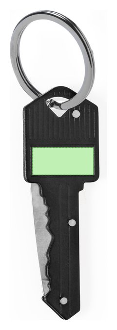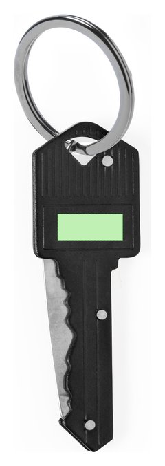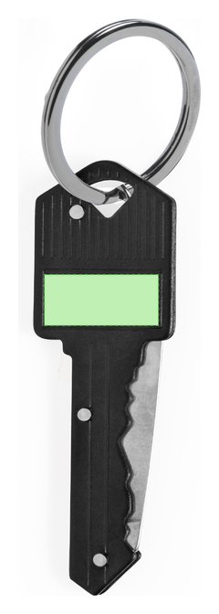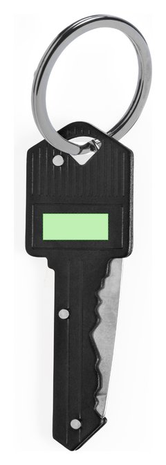 Distinguida navaja en forma de llave fabricada en aluminio y acero inox. Con anilla para llavero y hoja plegable. Presentada individualmente en caja kraft.