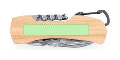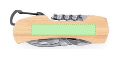 Navaja multiusos fabricada en acero inox y suave bambú. Con 9 funciones que incluyen cuchillo, tijeras, abrelatas, sacacorchos, destornillador philips, destornillador plano, lima y abrebotellas. Además, cuenta con un práctico enganche en forma de mosquetón. Presentada en caja de diseño kraft. Materiales como el bambú fomentan la utilización de materias primas naturales, reduciendo las emisiones contaminantes. Proviene de una planta de gran resistencia y versatilidad, con crecimiento y regeneración rápidos, siendo una excelente alternativa al uso de madera tradicional.