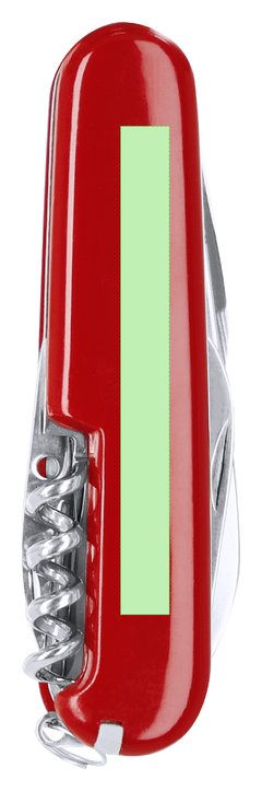 Navaja multiusos con accesorios de acero inox con 8 funciones, con recubrimiento de resistente ABS. Incluye dos cuchillos en tamaños diferentes, punzón, sacacorchos, palillo de dientes, aguja de coser, abrelatas y abrebotellas.