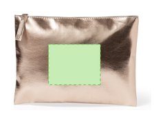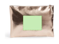 Neceser de polipiel en elegante acabado metalizado. Con cierre de cremallera y tirador a juego; disponible en colores dorado, plateado y oro rosa.