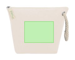 Neceser fabricado principalmente en algodón reciclado 240 g/ m2. Compartimento principal con cierre de cremallera. Con original cordón para fácil transporte unido mediante una argolla plateada. Incluye etiqueta exterior con logotipo algodón reciclado.