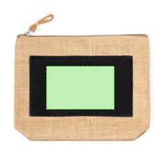 Neceser multiusos en combinación de yute laminado y algodón natural. Con cierre de cremallera y tirador en yute a juego. Parte central de algodón en variados colores.