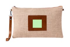 Neceser multiusos en combinación de yute laminado y polipiel. Con cierre de cremallera, tirador metálico y marco central a juego en polipiel de color natural. Presentado en bolsa individual.