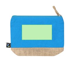 Neceser fabricado en combinación de algodón y yute laminado con certificación Fairtrade (Comercio Justo), un sistema comercial solidario y alternativo al convencional que persigue el desarrollo de los pueblos y la lucha contra la pobreza.Incluye compartimento principal con cierre de cremallera y tirador metálico, con base en tono natural yute y se complementa con una parte frontal superior en algodón en colores. Con práctico cordón para agarre. Incluida etiqueta Fairtrade y etiqueta con logotipo en cartón reciclado.