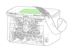 Nevera de línea nature y en resistente poliéster 600D RPET efecto melange, elaborado a partir de plástico reciclado para así fomentar la reutilización de residuos plásticos y contribuir a la sostenibilidad del planeta. Detalles en negro y base reforzada. Compartimento principal con cierre de cremallera e interior en aluminio. Incluye bolsillo exterior y cinta bandolera ajustable, con distintivo RPET en etiqueta exterior.