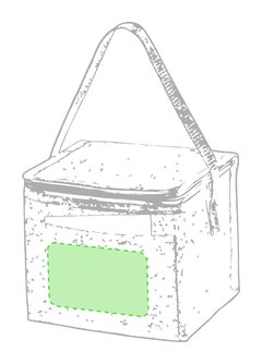 Nevera de línea nature con capacidad para 6 latas. Fabricada en corcho natural con interior isotermo acabado en aluminio. Cierre de cremallera y asa de transporte a juego. Incluye bolsillo exterior con amplia superficie de marcaje.