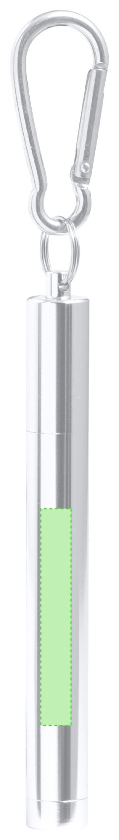 Pajita reutilizable y extensible en acero inox, con boquilla de silicona. Con accesorio limpiador incluido y presentada en estuche a juego con mosquetón para transporte.