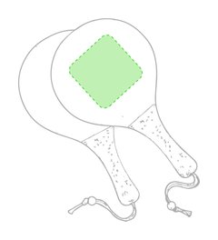 Par de palas de playa de línea nature. Fabricadas en madera, con mango reforzado en corcho natural y cintas para muñeca con ajustador. Presentadas en bolsa de algodón natural con cierre de cordón y pelota en caña de trigo.