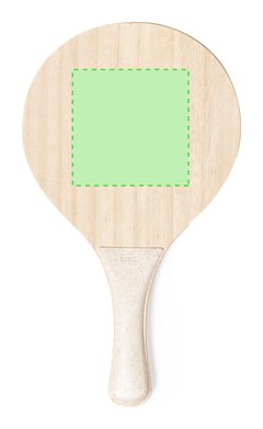 Par de palas de playa especiales para la sublimación. Fabricadas en madera, con mango reforzado en caña de trigo. Zona especial para la sublimación en la parte plana de la pala con posibilidad de diseños a todo color. Logotipo en el mango. Presentadas en bolsa de rejilla, con pelota de caña de trigo. La caña de trigo fomenta la utilización de materias primas naturales, reduciendo así las emisiones contaminantes.