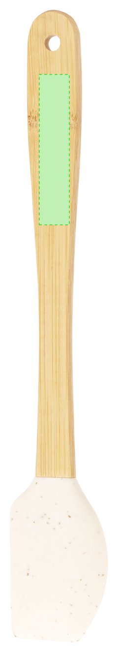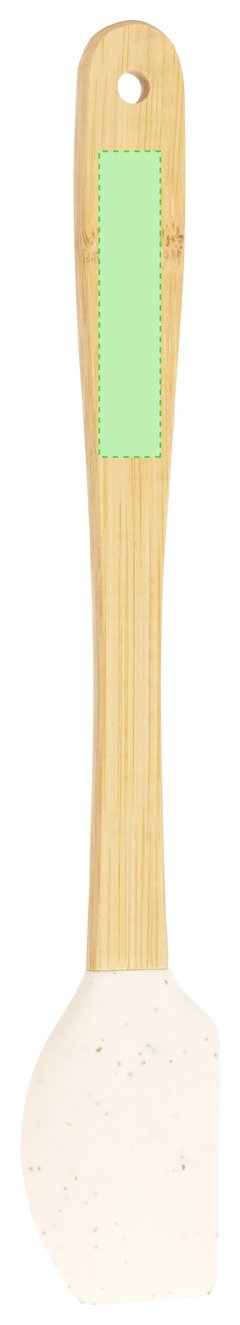 Paleta de cocina con extremo de silicona y atractivo color natural. Su mango, fabricado en bambú, proporciona comodidad. Presentado en bolsa individual de papel reciclada.