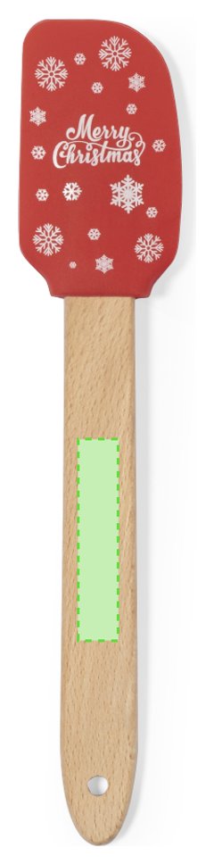 Paleta de cocina con extremo de silicona y originales motivos navideños. Confortable mango fabricado en madera natural. Presentado en bolsa individual reciclada.