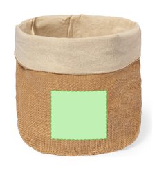Panera elaborada con suave algodón 100% en el interior y yute en el exterior, con un diseño redondo. Presentada en bolsa individual reciclada.