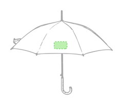 Paraguas de línea nature de 105cm de diámetro. En material pongee 190T RPET, elaborado a partir de plástico reciclado, para así fomentar la reutilización de residuos plásticos y ayudar a la sostenibilidad del planeta. De apertura automática y varillas metálicas. Mango y caña de madera, con etiqueta distintiva RPET