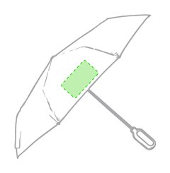 Paraguas plegable de 8 paneles en variada gama de colores. De 100cm de diámetro, apertura manual, con sistema antiviento y en resistente material pongee. Con varillas de fibra en color negro, cierre de velcro y mango ergonómico con mosquetón de enganche integrado. Presentado en funda individual a juego.