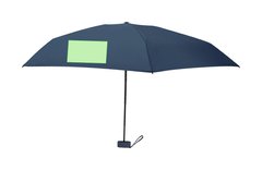 Paraguas plegable de 90 cm de diámetro en material poliéster 190T de 6 paneles. Con apertura manual, sistema antiviento y varillas en fibra de vidrio. Compacto mango y cinta a juego. Presentado en funda de transporte rígida fabricada en PU con cierre de cremallera y cinta a juego.
