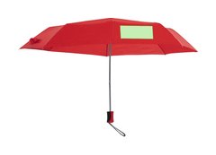 Paraguas plegable de 8 paneles de poliéster 190T. De apertura manual, con varillas metálicas en color plateado y cierre de velcro. Mango ergonómico con cinta de transporte y funda protectora a juego. Disponible en amplia gama de colores. Presentado en bolsa individual reciclada.