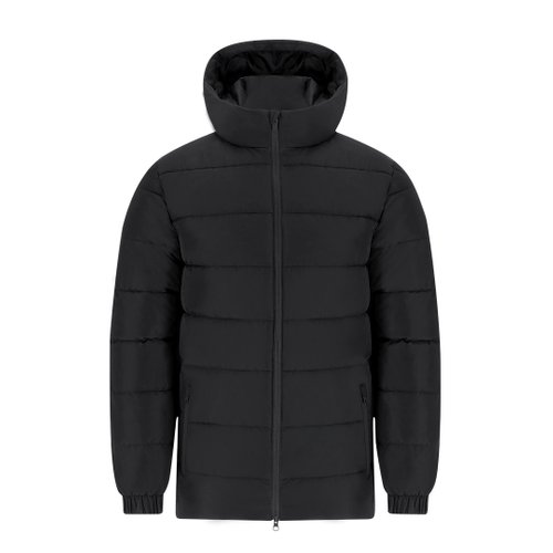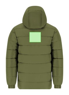 Parka infantil unisex acolchada con capucha fija y visera integrada. Incorpora cremallera frontal a tono con doble tirador y protector de barbilla. Puños elásticos para un ajuste cómodo y dos bolsillos laterales con cierre de cremallera a juego. Incluye acceso interior para marcaje en pecho izquierdo y espalda, ideal para personalización.