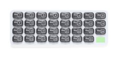 Original pastillero mensual fabricado en resistente PP. Organizador de 31 casillas independientes y extraíbles para guardar día a día todos los comprimidos necesarios. Elegante base blanca y casillas de color gris con el día del mes marcado. Presentado en bolsa individual.