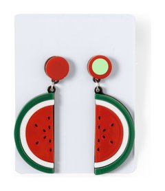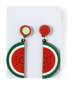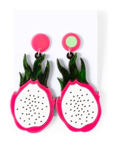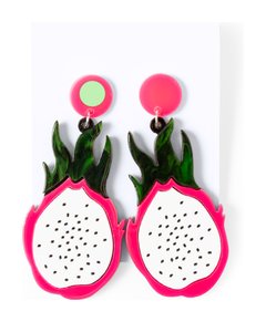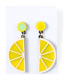 Fresca y original colección de pendientes frutales. Cautivadores y llenos de color, tienen forma de fresa, pitaya, manzana, sandía o limón, siendo una declaración de estilo. Fabricados con atención a los detalles y con cierre de clip. Presentados individualmente en cartón blanco y embolsados.
