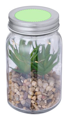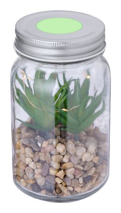 Planta decorativa sobre una base de piedras, en tarro de cristal de borosilicato. Iluminada por 5 LEDs que funcionan con 3 pilas AAA (no incluidas). Presentado en caja de diseño kraft. Fabricado en cristal de borosilicato, que ofrece una resistencia y durabilidad excepcionales, alargando su vida útil y pudiendo ser reutilizado infinidad de veces.