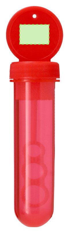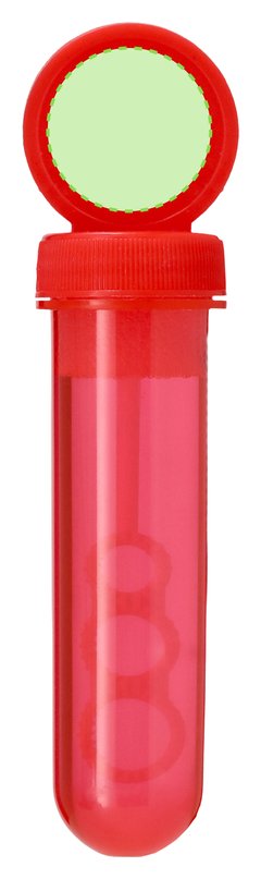 Pompero con aplicador especial que permite crear pompas en 3 tamaños. Líquido incluido (30 ml). Con tapadera de color sólido y cuerpo translúcido.