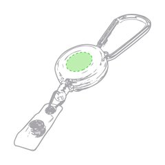 Porta acreditaciones extensible de sobrio diseño, con gancho para colgar la acreditación y mecanismo extensible de hasta 65 cm. Con mosquetón de enganche metálico y amplia superficie de marcaje