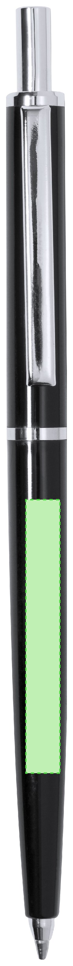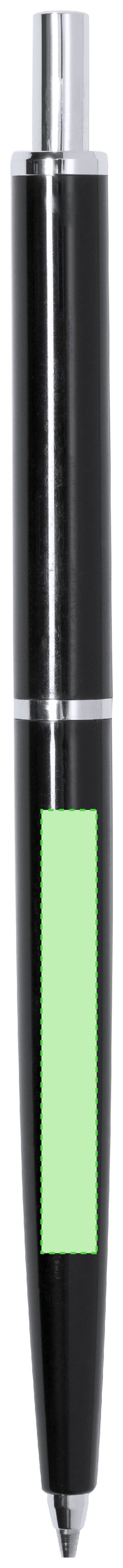 Elegante portaminas hecho en resistente ABS. Cuerpo en color negro y empuñadura a juego de tacto liso, con elementos cromados como botón, clip, punta y anilla central.Con goma y minas incluidas de 0,7 mm.