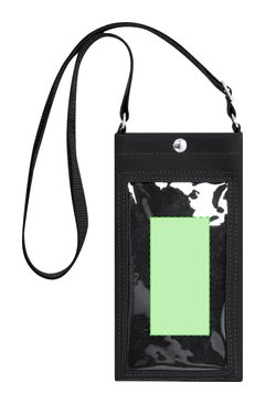 Portatodo en elegante PU. Con pantalla transparente con funcionalidad touchscreen. Cierre en botón para mayor seguridad. Cintas de transporte ajustables.