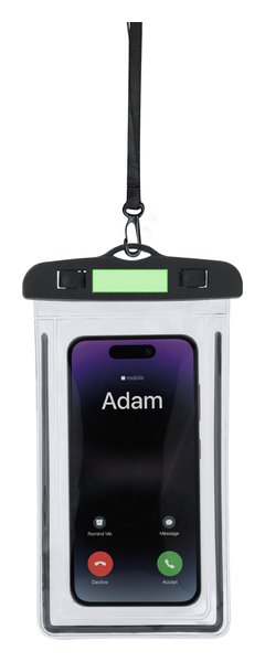 Portatodo impermeable fabricado en PVC, diseñado con función táctil para facilitar el uso de dispositivos. Con sistema de seguridad con cierre de palancas para una buena estanqueidad. Compatible con pantallas de hasta 6,7 pulgadas. Incluye cordón y mosquetón a juego para mayor comodidad.