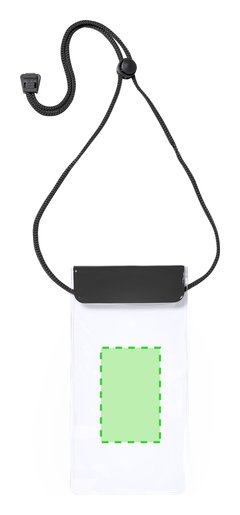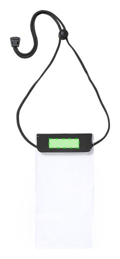 Práctico portatodo impermeable en PVC, con función táctil y doble sistema de seguridad para preservar la estanqueidad. Especialmente diseñado para dispositivos con pantalla de 6,5 pulgadas. Con cordón a juego, accesorio de ajuste y amplia superficie de marcaje.