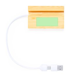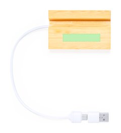 Puerto USB 2.0 fabricado en bambú. Con 1 puerto Tipo C y 2 puertos USB. Además, incluye un práctico soporte para smartphone o tablet. Presentado en atractiva caja de diseño eco. Materiales como el bambú fomentan la utilización de materias primas naturales, reduciendo las emisiones contaminantes. Proviene de una planta de gran resistencia y versatilidad, con crecimiento y regeneración rápidos, siendo una excelente alternativa al uso de madera tradicional.