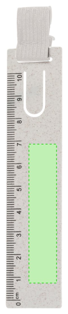 Original regla marcapáginas hecho en caña de trigo. Práctico utensilio de medida de hasta 10cm con pestaña para usar como marcapáginas y goma elástica para sujetar bolígrafos. Fabricado en caña de trigo y poliéster. Presentado individualmente en una bolsa de papel reciclada. La caña de trigo fomenta la utilización de materias primas naturales, reduciendo así las emisiones contaminantes.