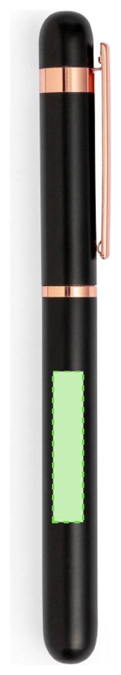 Elegante roller especialmente diseñado para el marcaje en láser con logotipo en color rosado. Con clip metálico y detalles plásticos en acabado rosado. Con cartucho jumbo, en tinta azul y cierre con capucha. Disponible en dos distintivos colores. Presentado en elegante caja de diseño negra.
